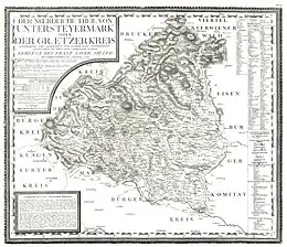 The East Styrian Hill Country is part of the Alpine Foreland in the East and Southeast and extend over large parts of East Styria and Southeast Styria. They are characterised by elongated hill ridges or interfluves (Riedel). They are bounded in the west and south by the River Mur and in the north by the Prealps East of the Mur, especially the eastern Graz Uplands, the prominent Kulm massif and the Joglland with its peak, the Masenberg. To the east it is bounded by the Lafnitz river.