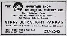 EMS was founded in 1967 in Wellesley, Massachusetts by two camping enthusiasts – Alan McDonough, who was running the family hotel chain, and Roger Furst, a lawyer whose office was in the McDonough complex. They targeted the outdoor equipment market in Boston. The first store on Linden St. in Wellesley carried the Gerry outdoor equipment line as well as downhill skis.