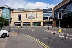 A later application was accepted, although now without a multiplex cinema. The listed building was moved brick-by-brick to the other side of Falcon Square, and now hosts Pizza Express and Laura Ashley.[6] Building work started in 2001 and was opened in 2003. This new development included two bridge walkways connecting the new phase with the existing shopping centre, complete with Debenhams as the anchor store, and a new food court.[7] The expansion of Eastgate and the construction of the Falcon Mall was deemed one of 'the most impressive planning projects in Scotland in recent years' and was the overall winner of the Scottish Awards for Quality in Planning 2003.[8]