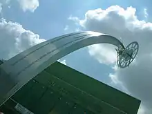 In 1992, the Ebbw Vale Garden Festival was the last National Garden Festival. It was sited on the south side of the recently demolished steel works. The festival ran for five months between May and October 1992 attracting over two million visitors. The development cost around £18 million. Since then the site has been considerably redeveloped, with new housing, some light industry, and the Festival Park Branded Outlet, a retail outlet comprising approximately forty shops.[9] However, by 2021, the shopping park had fallen into disuse [10] and, in August 2021, it was sold to a real estate and investment company[11] which planned to redevelop the site into a "mixed use business centre".[12] The last store closed in early 2022.[13]