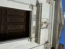 The church has a simple portal, surmounted by a niche where you can see a marble alto-rilievo panel representing Ecce homo.[3]