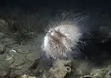Echinus esculentus, the European edible sea urchin or common sea urchin, is a species of marine invertebrate in the Echinidae family. It is found in coastal areas of western Europe down to a depth of 1,200 m (3,900 ft).[3] It is considered "Near threatened" in the IUCN Red List of Threatened Species.[1]