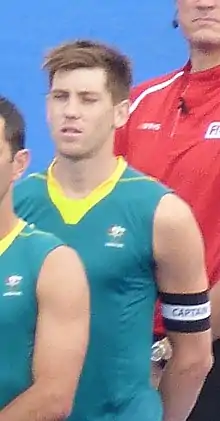 In 2009, he won a gold medal at the Men's Hockey Champions Trophy competition.[22][23] In 2010, he represented Australia at the 2010 Commonwealth Games,[14] where he won a gold medal when his side beat India 8–0 in front of an Indian home crowd.[24] His coach Ric Charlesworth described his performance at the Games as "exceptional."[24] In 2010, he won a gold medal at the World Cup. In the 2–1 victory in the gold medal round against Germany, he scored a goal in the sixth minute.[25]