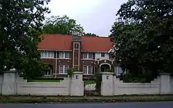 The Ederington House, known locally as the "E" House for the decorations on its fences, is a historic house at 326 South Main Street in Warren, Arkansas. It was built in 1926-27 for Louis Ederington, a local shopowner. It was designed by H. Ray Burks, an architect of some local reputation whose other designs include the Blankinship Motor Company Building and the Drew County Courthouse. This house is one of a few definitely attributed to Burks, and is set on imposing grounds in central Warren. The house is built primarily of red brick, with stucco gable ends and cast stone trim details. The property is lined on two sides by a concrete fencing with iron gates. The posts flanking the driveway and lining the fence are topped by large bronze "E"s.[2]