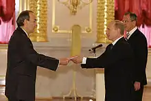 - ↑ "President Vladimir Putin received the letters of credentials of new foreign ambassadors to Russia". The Kremlin, Moscow: Presidential Press and Information Office. 27 July 2007. Archived from the original on January 13, 2013. Retrieved 2008-10-07.