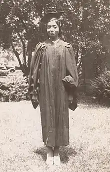 Education was a priority in the Renfrow family, and all the children attended college and later had careers.[11][6] Edith, like most of the other Renfrow children, completed her public school education in Grinnell. She was the only one to stay in town and attend Grinnell College. She graduated in 1937 with a major in psychology and a minor in economics. She was the first African American woman to graduate from Grinnell College.[8]