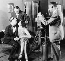 ![]() Goulding helping position actors for a kiss while making a film with the motion picture class at Columbia University in 1927 | |