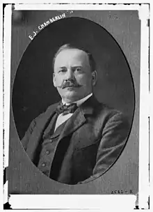 He was born in Lancaster, New Hampshire, on August 25, 1852. He attended Montpelier Methodist Seminary, and in 1871 started work with the New England Railroad. In 1886, he became the general manager of the Canada Atlantic Railway, and in 1909 he was the general manager and then the vice president of the Grand Trunk Railway. In 1912 he became the president of the Grand Trunk Railway when Charles Melville Hays lost his life on the RMS Titanic.[1] Chamberlin's presidency differed from Hays' in that he led the Grand Trunk to expand westward as part of the Canadian transcontinental railway rather than continuing investment in the Central Vermont Railway and connections with New England.[2]