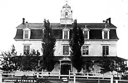 The churches were of course free to operate schools without interference from the government. This occurred in a great number of places; the Catholic church in particular constructed prominent and grandiose buildings, such as the Convent at St.-Louis-de-Kent depicted at right. The Catholic church, not being restricted by mundane things like taxes and electors, could afford to establish residential schools wherever it seemed propitious.[4] The Anglican Church in New Brunswick operated, from about 1820 until at least 1870, "Madras Schools"[5] along the lines drawn by Andrew Bell. The Anglican system was useful, notes a biographer of Bell, "when funds were sparse and teachers in very short supply."[6]