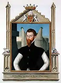 Edward Courtenay, 1st Earl of Devon (c. 1527 – 18 September 1556) was an English nobleman during the rule of the Tudor dynasty. Born into a family with close royal connections, he was at various times considered a possible match for the two daughters of Henry VIII, both of whom became queens regnant of England. He was a second cousin to Edward VI, Mary I and Elizabeth I through King Edward IV.
