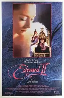 Edward II is a 1991 British romantic historical drama film directed by Derek Jarman and starring Steven Waddington, Tilda Swinton and Andrew Tiernan. It is based on the play of the same name by Christopher Marlowe. The plot revolves around Edward II of England's infatuation with Piers Gaveston, which proves to be the downfall of both of them, thanks to the machinations of Roger Mortimer.