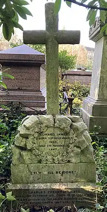 James died of typhoid fever, while returning from a holiday in Switzerland, at the Hôtel du Louvre, Paris, on 3 November 1867, and was buried on the western side of Highgate Cemetery, London, on 9 November. He married in 1835 Mary, daughter of Edward Mason Crossfield of Liverpool.
