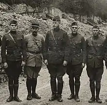 Brigadier General Edward L. King (center) as commander of the 65th Brigade with members of his staff near Mouilly, France, November 1918.