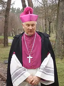 Edward Ozorowski (born 1 May 1941)[1] is a Polish Roman Catholic clergyman. He served as the Auxiliary bishop in Białystok from 1979 to 2006. Ozorowski then served as the Metropolitan bishop in Białystok from 2006 to 2017. He was awarded Honorary citizenship of Wasilków in 2007.[2] He was also honored by Białystok in 2014[3] and received the Minister of National Education award.[1]