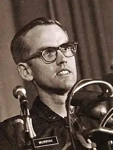 His appointment to the USS Pueblo was the first time Murphy served as executive officer. As a result of this fact, he adopted a "by-the-book" attitude that clashed with the mentality of the rest of the crew.[7] Murphy and the captain, Lieutenant Commander Lloyd M. Bucher, were at odds throughout nearly the entire incident. Murphy publicly noted his dislike of Captain Bucher, claiming among other things that Bucher gave up classified information to the North Korean army, thus abandoning his duty to the U.S. military.[8] While Murphy claimed Bucher was an incompetent drunkard and womanizer, Bucher describes Murphy as an incompetent coward. In fact, the men's account of the Pueblo incident differed greatly.[9]