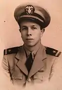 Corning joined the United States Navy for World War II.[2] He enlisted in 1942, and received a commission as an ensign.[2] Corning participated in combat in the Pacific theater, and attained the rank of lieutenant before receiving his discharge in 1946.[2] In January 1946, Corning's name appeared among a list of Navy officers who were passengers aboard USS LST 589 when it sailed from Qingdao to Shanghai.[3]