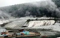 The historical and geographical associations of Egerszalók have made it a favourite spa in Hungary. The area's waters have been in use since the 1730s, although the current spa only came into operation in 1961. Before entering the spa pools, the steaming water runs down a series of cascades backed and lined with travertine; the gleaming mineral has precipitated from the water as it interacts with air at atmospheric temperatures. The travertine is locally called "salt," and the cascade of water is called "Salt Hill."[3]
