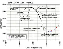 What was unprofessional was the insistence by the Egyptians, in the face of irrefutable evidence, to anyone who knows anything about investigating airplane accidents and who knows anything about aerodynamics and airplanes, was the fact that this airplane was intentionally flown into the ocean. No scenario that the Egyptians came up with, or that we came up with, in which there were some sort of mechanical failure in the elevator control system, would either match the flight profile or was a situation in which the airplane was not recoverable.[10]