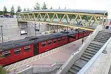 Eidsvoll Verk Station (Norwegian: Eidsvoll Verk stasjon) is a railway station located on the Gardermoen Line at Råholt near Eidsvoll Verk in Eidsvoll, Norway. The station was taken into use in 1999 when the commuter trains to Eidsvoll started using the Gardermoen Line. It was designed by Arkitektskap and built in concrete, with details in metal and wood, and is sunk into the ground.