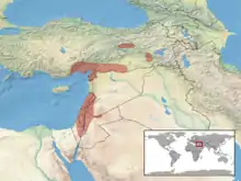 This species found in Turkey, Syria, Lebanon, Israel, Palestine, Jordan extending to Iraq and Iran.[3]