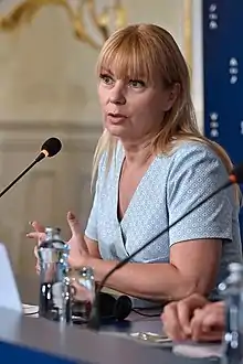 Elżbieta Ewa Bieńkowska (Polish pronunciation: [ɛlʐˈbʲiɛta bʲiɛɲˈkɔfska]; née Moycho; born on 4 February 1964 in Katowice) is a Polish politician who served as Poland's Deputy Prime Minister and Minister of Regional Development and Transport before becoming a European Commissioner in the team of Jean-Claude Juncker from 2014 to 2019.[2]