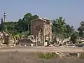 In 395 Tyre became part of the Byzantine Empire and continued to flourish. Likewise, the necropolis in El Bus grew further to be arguably one of the largest in the world, though many graves were "reused".[15] A main road of some 400m length and 4,5m width paved with limestone was constructed there during Byzantine times.[17] Another arch, smaller than the Roman triumphal arch, was erected some 315 meters to the East.[15]