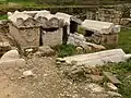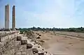 Before the landscape changed though, the Phoenician funerary site of El Buss was still used during the Hellenistic era.[8] In addition, the area just neighbouring to the North, now known as Jal Al Bahr, became a burial ground, as recent excavations have shown.[12] To the South of it, a sanctuary dedicated to the Olympian deity of Apollo was constructed, possibly still at the end of the Hellenistic era[10] or latest in the first century CE:[13]