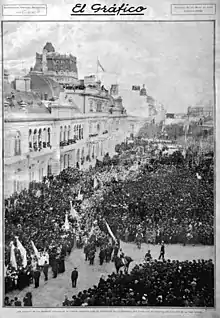 The first cover showed a children parade in front of Casa Rosada for the 119th. anniversary of the May Revolution. El Gráfico's first director was Aníbal Vigil, a journalist and also sportsman. Vigil travelled to Paris as special correspondent to cover the 1924 Summer Olympics, being probably the first sports journalist of Argentina attending an Olympic Game.[5]
