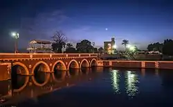 El Qanater El Khayreya (Arabic: القناطر الخيرية  pronounced [elʔɑˈnɑːtˤeɾ elxæjˈɾejjæ], "the Benevolent Bridges") is a city and a markaz in Qalyubia Governorate, Egypt. It is the location of the Delta Barrages, the first modern irrigation structure across the Nile, located at the apex of the Nile Delta. In the mid 1850s, when Viceroy Sa'id Pasha took over project construction, he ordered a silver medal to be struck to mark the occasion. He then ordered the construction of a town near the incomplete barrage. Again the project would be bogged down due to financial problems; the original barrages were initially completed in 1862. A new barrage structure was built slightly downstream in 1939.[1] The name of the city is a reference to the structure and the river crossing it.[2]