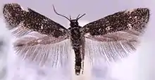 This article incorporates text from this source, which is in the public domain. - ↑ Ian Kimber. "Elachista atricomella". UK Moths. Retrieved 13 March 2020.