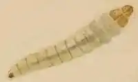 The larvae feed on tor-grass (Brachypodium pinnatum), false-brome (Brachypodium sylvaticum), cock's-foot (Dactylis glomerata) and mountain melick (Melica nutans). They mine the leaves of their host plant. The mine is transparent and generally descends from the leaf tip. A central silken tube stretches over the entire length of the mine which the larva uses to retreat in. The frass is deposited in this tube. Feeding takes place from within the tube.[4] They are greyish white. Larvae can be found from September to November. They then hibernate within the mine. In spring, they leave the mine to pupate.