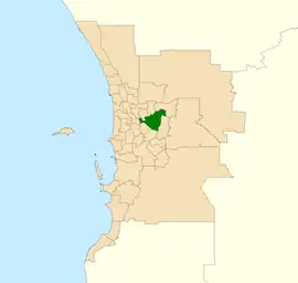 Belmont is bounded by the Swan River to the northwest, the Helena River to the north, the freight railway to the east, Welshpool Road to the south and Orrong Road to the southwest. Its boundaries include the suburbs of Ascot, Belmont, Cloverdale, Kewdale, Redcliffe, Rivervale, South Guildford and Welshpool, as well as Perth Airport, and parts of Burswood and Hazelmere.[4]