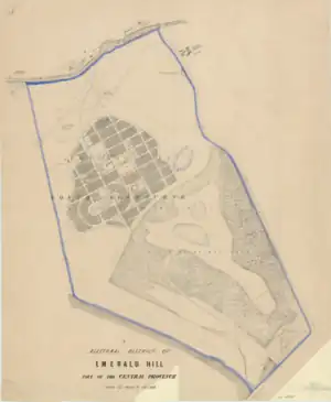Emerald Hill was first proclaimed in 1859,[1] and was defined in the Victorian Electoral Act, 1858 (which took effect at the 1859 elections) as: