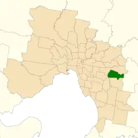 The electoral district of Ferntree Gully was an electorate of the Victorian Legislative Assembly.[1] It was created in 2002 as a replacement for the abolished electorate of Knox.