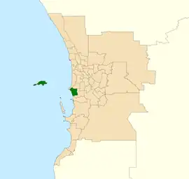 Fremantle is a north–south elongated electorate. It is bounded to the north by the Swan River and to the west by the Indian Ocean. A series of roads make up the district's short southern and long eastern boundary. The district takes in the suburbs of Beaconsfield, East Fremantle, Fremantle, North Coogee, South Fremantle and White Gum Valley, as well as parts of the suburbs of Bicton, Hamilton Hill, Palmyra and Spearwood. The district also includes Rottnest Island.