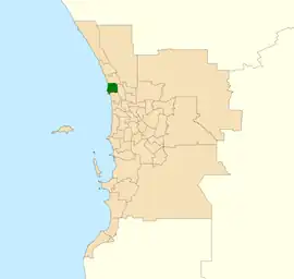 The district was first contested at the 1996 state election, essentially replacing the seat of Whitford. It was held by Liberal MP Rob Johnson from its creation until his 2017 defeat, after resigning from the party to sit as an independent. The district boundaries were redistributed in 2019 and saw the suburb of Sorrento being removed while the suburbs of Beldon and Mullaloo added.[1]