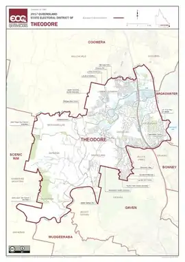 ![]() Map of the electoral district of Theodore, 2017 | |||||||||||||||