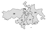 Electoral districts in their modern form were created on April 28, 2012, by the resolution of the Central Election Commission #82 (up to that moment there was a different system of electoral districts).[5] Initially, they were intended to be used only for parliamentary elections, but in 2019 they were also applied for the presidential election. Different system of electoral districts was used in the 2014 presidential election. The current electoral districts system in theory can be applied to all-Ukrainian referendums, but in practice, no referendums have been held in Ukraine since 2000.[6] The current electoral districts system was used in 2012 parliamentary election, 2014 parliamentary election, 2019 presidential election and 2019 parliamentary election.