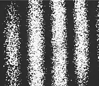 To visualize this effect, the image and reference beams are combined on a video camera and recorded. When the object has been displaced/deformed, the new image is subtracted point by point from the first image. The resulting image is a speckle pattern with black 'fringes' representing contours of constant 2nπ.