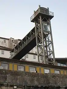 The Elevador da Ribeira or Elevador da Lada is a public elevator in Porto, Portugal. It connects the neighbourhood of Ribeira (at no. 66 of Largo dos Arcos da Ribeira, near the Dom Luís I Bridge)[1] to the middle of the slope of Barredo, by means of a vertical lift and a footbridge.[2]