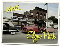 Elgin Park was a perpetual miniature imaginary village created by artist and photographer Michael Paul Smith in 2008. It was a 1:24-scale recreation of everyday scenes from mid-20th-century America, ranging from the 1920s to the mid-1960s, based loosely on Sewickley, Pennsylvania, where Smith lived for the first seventeen years of his life.[1] Smith, who was "founder, chief architect and mayor" of Elgin Park,[2] photographed with his digital camera, using forced perspective, meticulously arranged scenes from the village and shared them online.[2] Each photograph was a self-contained miniature play, meant to be viewed as a window into his memories and imagination.[1]