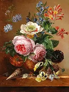 Koning was born in Haarlem and was a pupil of Henriette Ronner-Knip.[1] She was something of a child prodigy and at age 9 was honored by having her animal drawings on show at the 1825 Tentoonstelling Nationale Nijverheid (National Industrial show) in Haarlem.[1][2] In 1844 she was made honorary member of Kunst zij ons doel and a year later she was named member of the Koninklijke Academie van Beeldende Kunsten in Amsterdam.[1] In 1859 she married the ship captain Sybrand Stapert and accompanied him on a trip to Indonesia, and her drawings of sea life from this trip granted her an honorary membership in the Naturalist's club of Indonesia, but the couple returned to the Netherlands later the same year and settled in Groningen. After her marriage she signed works "EJS geb. K" (short for Elisabeth Johanna Stapert, born Koning). Her Indonesian botanical work is often seen as her most important legacy, but her flower paintings were awarded prizes and purchased by public collections in her lifetime.[1]