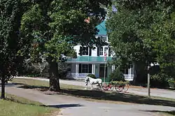 Ellerbe Springs Hotel is a historic rural resort hotel located near Ellerbe, Richmond County, North Carolina. It was built around 1875 and is a two-story, three part, rambling frame dwelling in the Late Victorian style. It consists of a five bay central block with five bay flanking wings and steep hipped roofs. It features a one-story, wraparound porch. Also on the property is a contributing late-19th century dance pavilion. The hotel developed around a mineral spring. Eleanor Roosevelt was a visitor to the site in 1940, when she spoke of the president's National Youth Administration program.[2]