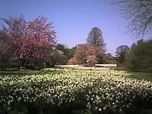 The arboretum's main focus is on the genera Prunus, Malus, and Hydrangea. Tree specimens include Acer rubrum, Aronia arbutifolia, Cephalanthus occidentalis, Chamaecyparis thyoides, Ilex glabra, Magnolia virginiana, and Taxodium distichum. It also includes various bamboo species (Phyllostachys, Fargesia, Pseudosasa, and Sasa), as well as Alnus glutinosa 'Imperialis', various Salix species, and Miscanthus varieties.