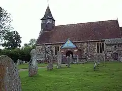 Ellingham church was built in the 13th century.[7][8] It is thought that there was an earlier, probably Saxon, church on the site.[9] It is described in early charters as the church of St Mary or as the church of All Saints with the chapel of St Mary.[7] It was added to in the 15th century,[7] and the red-brick west wall was rebuilt in 1746.[8] The church was restored 1869-90 by Thomas Graham Jackson.[7] It has a large blue sundial located over the porch of the church.[10] The tomb of Alice Lisle can be found in the church.[9]