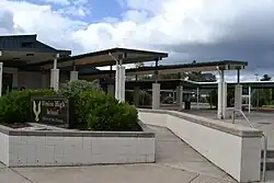 Elmira High School (often abbreviated as EHS) is a public high school in Elmira, Oregon, United States, located approximately 15 miles from Eugene, Oregon. It is one of the four schools of the Fern Ridge School District and provides an education of grades 9-12 for the city of Veneta, as well as for the towns of Elmira, Noti and Walton. Total enrollment numbers range from 350 to 450 students with a roughly even gender ratio. They operate on a seven period schedule over the course of two semesters, beginning in early September and ending in early June. EHS has four main buildings. In the lower left corner of the school consists of the main office and entrance, the theatre, library and the main studio for the school's radio station KOCF 92.7 FM, hosted by Stuart "Stu" Burgess. This building also contains the main hallways for the sophomore, junior and senior classes, as well as the counseling and learning centers. There is also an outdoor area outside of the building for social gatherings between students during passing periods and lunch. In the lower right corner is where the main gym and auxiliary gym are situated, as well as the freshman hallway and the Home Ec classroom. The auxiliary gym used to be the school's front entrance, however due to the athletics department asking for more practicing space and extracurricular opportunities, the auxiliary gym was built to satisfy those needs, and the school went for a more interior focused entrance. In the upper left corner is the Cafeteria, and in the upper right corner is the Band/Choir room, the weight room and workshops for students interested in welding, carpentry, woodworking and more.[4]