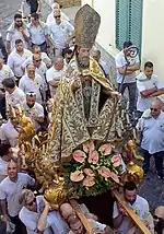 On 11 January 460 his body was buried in the Cathedral of Atella, where it remained until 787, when, following the incursions of the Longobards, it was moved to the city of Salerno, where it still rests in the crypt of the Cathedral of St. Matthew.[9][10][11][12]