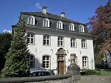 Listed residential building in Hagen-Hohenlimburg (Elsey), Im Stift 35. Built in 1789 in the late rococo style. The quarry stone wall in front of the house with classical pillars crowned by vases. Former curia house of the Elsey Monastery, abbess Amalie Dorothea Elisabeth von dem Bottlenberg's residence. Kessel (term of office 1776–1797).