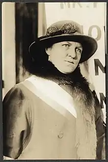 Elsie Hill was involved in the planning of the Woman Suffrage Parade of 1913, and notably reached out to African American students during the planning of that event.[6] In 1914–1915 she joined the Congressional Union of Woman Suffrage’s executive committee, and headed efforts to establish branches of the Union in South Carolina and Virginia.[4] In July 1916 she spoke at a street meeting in St. Paul, Minnesota, during a Prohibition Party convention (while representing the Congressional Union for Woman Suffrage) and the convention did endorse a plank advocating a suffrage amendment.[3][7] Alice Paul sent Hill on public tours to campaign in favor of women's suffrage in 1916.[4]