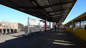 Elsterwerdaer Platz is a surface level Berlin U-Bahn station located on the U5. It is named after the town of Elsterwerda. The station opened on 1 July, 1988 to serve the new development of Biesdorf and is near the village commons and the Biesdorf Center shopping mall (on B1). Until 1989, it was the eastern terminus of what is now line U5.[1]